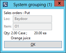 Contoso Juice distributes orange juice. The supplier of the orange juice packs the juice into shippable cases, which Contoso Juice receives and puts away directly.
