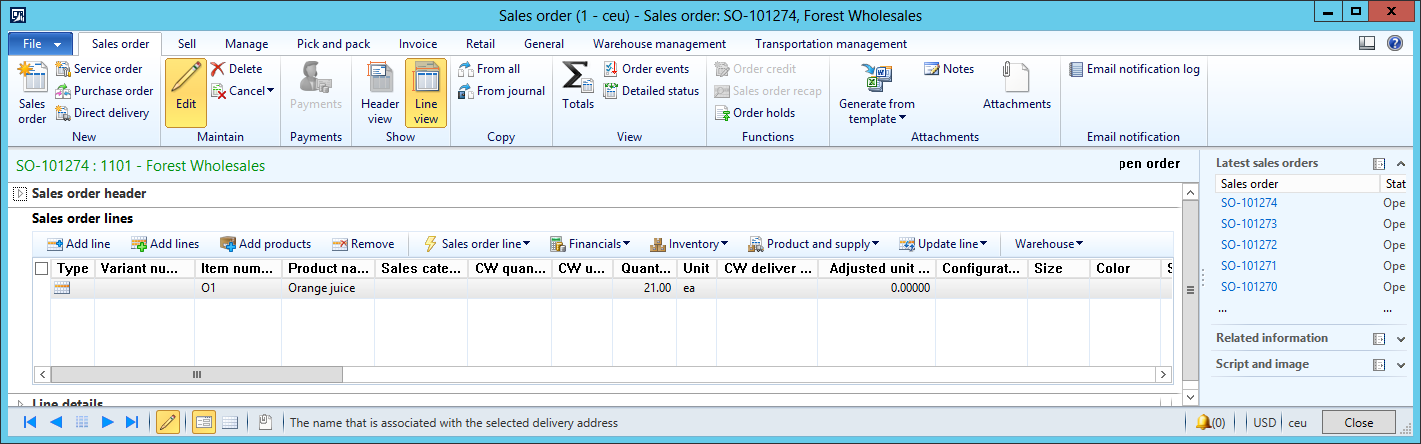 Contoso Juice has received a sales order for a quantity of 21 eaches of orange juice. They will deliver the shipment in 3 containers: