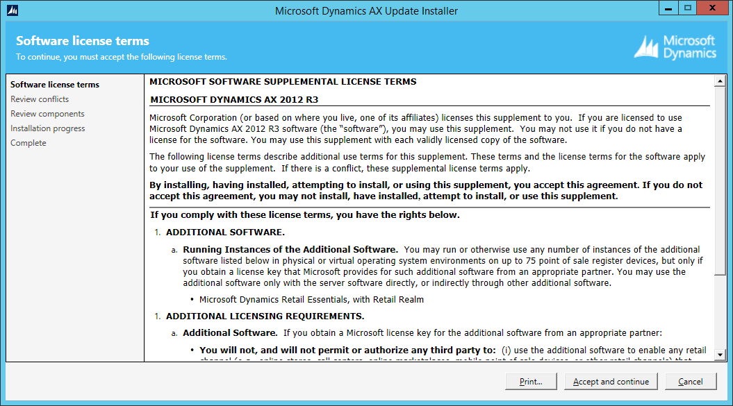 Accept the Software supplemental license terms.
