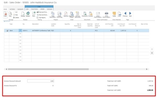 Before Microsoft Dynamics NAV 2015, totals and discount information was scattered between the document and the Statistics page, which made it less discover-able and less usable for new users. It was difficult to see the discount amounts, relate the amounts to the currency of the invoice, and it was not-intuitive that you had to update the Statistics page to see updates on the document. In addition, the result of the update was not visible on the main document, which added to the confusion.