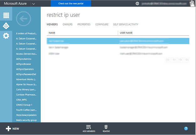 You can restrict access to all Users or groups of users. It’s more efficient to restrict by a group if only a subset of your Azure Active Directory (AAD) users are accessing CRM Online.