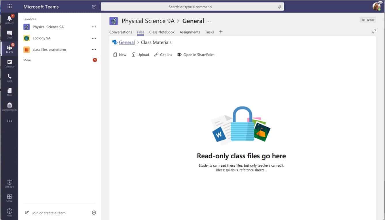 Microsoft Teams is great for collaborating with your class, including sharing reference materials to help guide students. You can easily drop these files into the folder called ‘Class Materials,’ which is read-only by default.