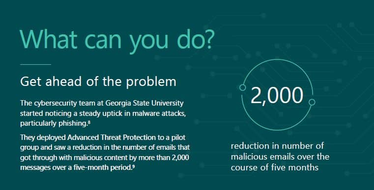 Enabling IT teams to focus their energy and efforts on securing the classroom is top-of-mind for school administrators and IT leaders in education. Ensuring valuable personal data and digital interactions are secure and protected across technology platforms is critical. While phishing is estimated to have originated in the mid-1990s, this kind of data breach will likely be around well into the future—and education organizations need to be prepared. With Microsoft Threat Protection, IT decision makers and school administrators can feel more confident their technology infrastructure is being protected. And with the system’s strategic technology, education organizations can also benefit from IT staff that leverages relevant insights to expand their skills, grow their knowledge, and better protect their investments.