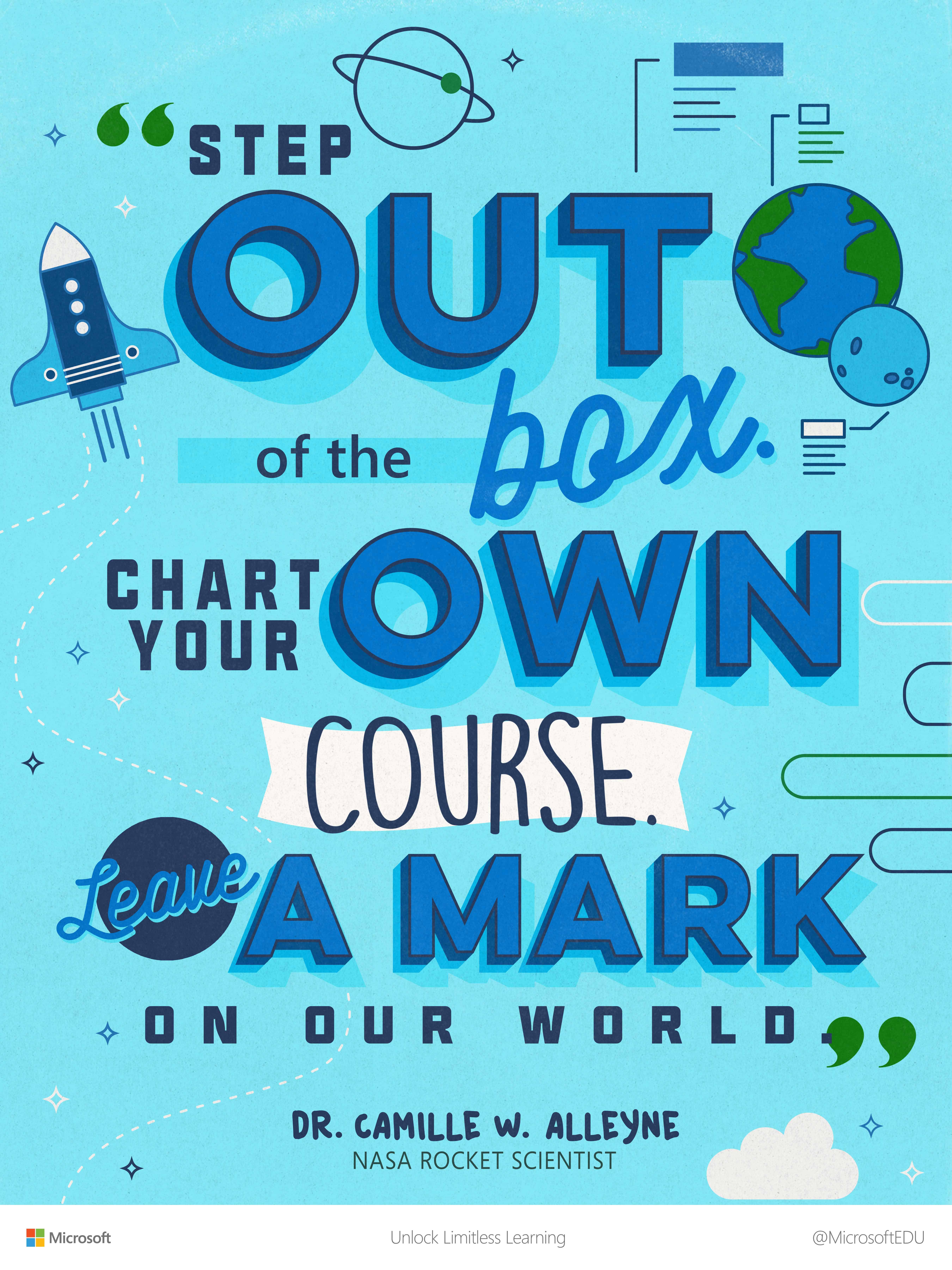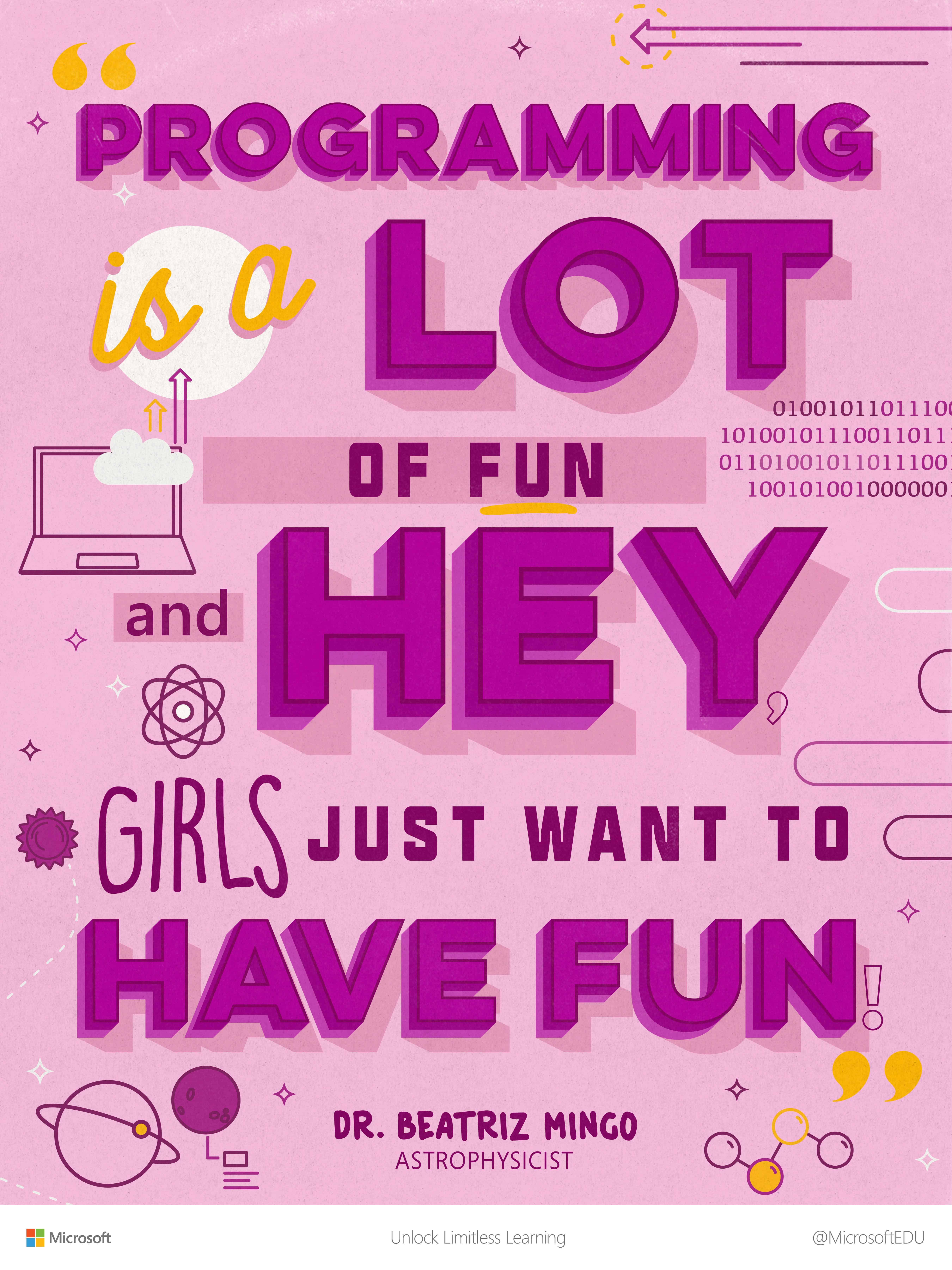 Spread the support by sharing your words of encouragement or any posters you display using #MicrosoftEDU and #MakeWhatsNext. Then, visit aka.ms/girls-in-stem to learn more.
