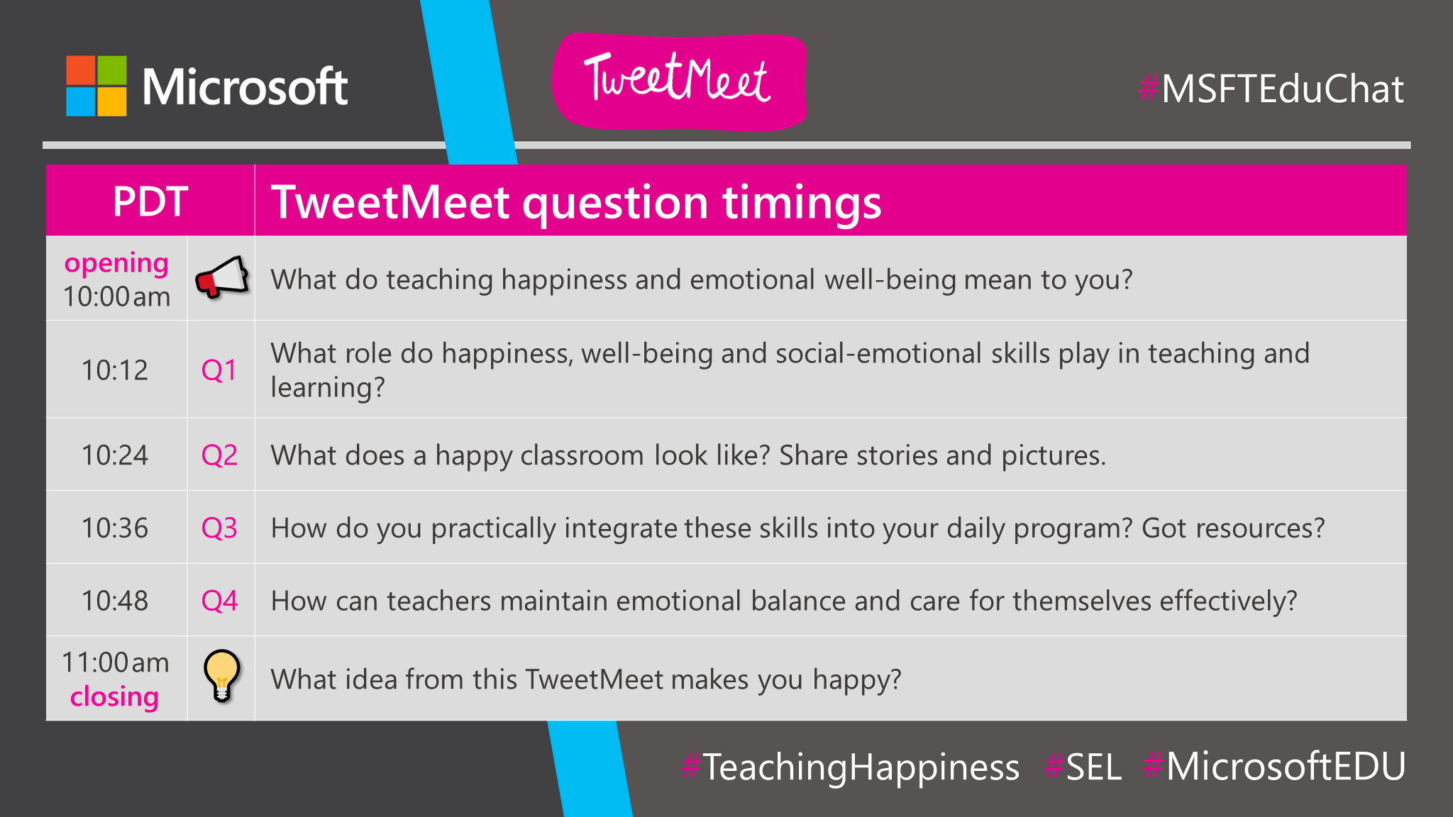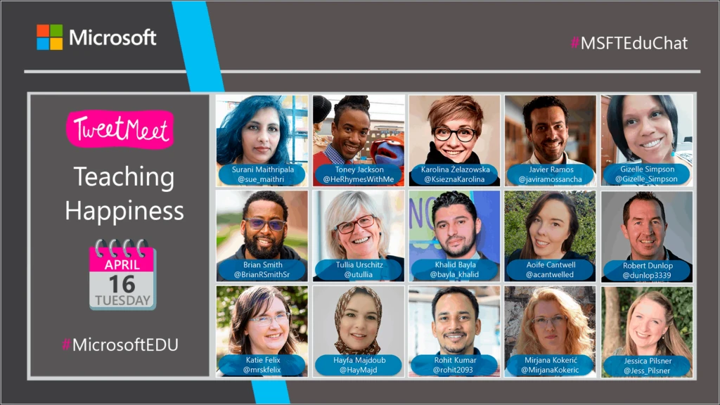 Teaching happiness around the world in the #MSFTEduChat TweetMeet on April 16