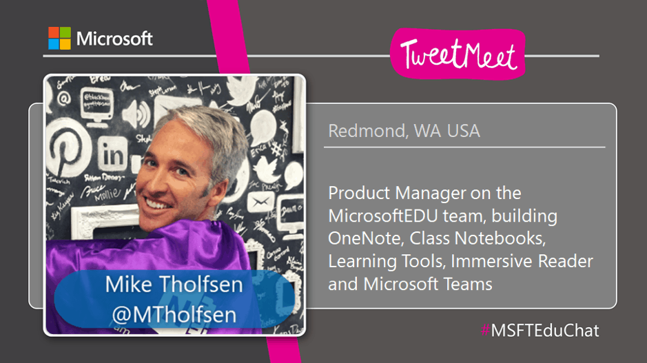That’s why we’re happy to bring you another dual event this month: our regular #MSFTEduChat TweetMeet followed by a Live Event, this time presented by Mike Tholfsen, product manager on the Microsoft Education Team.