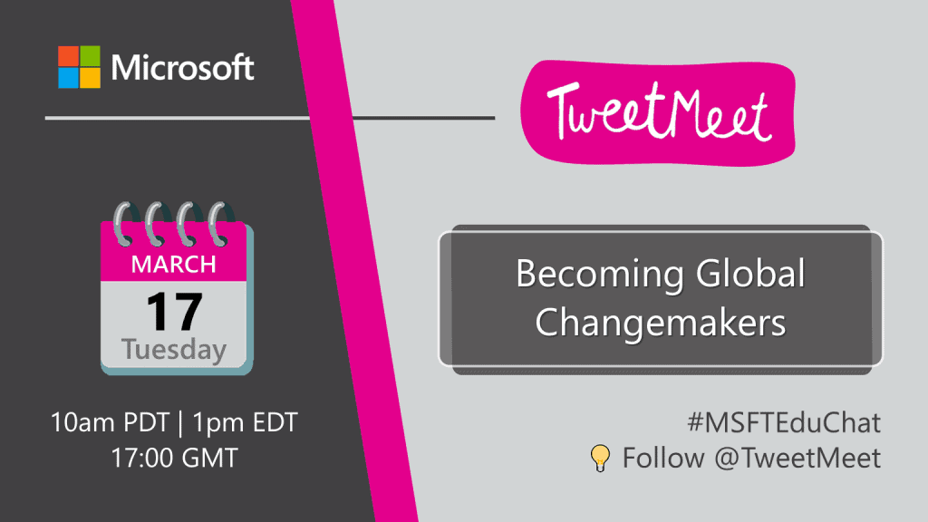 TweetMeets are monthly recurring Twitter conversations about themes relevant to educators, facilitated by Microsoft Education. The purpose of these events is to help professionals in education to learn from each other and inspire their students while they are preparing for their future. The TweetMeets also nurture personal learning networks among educators from across the globe.
