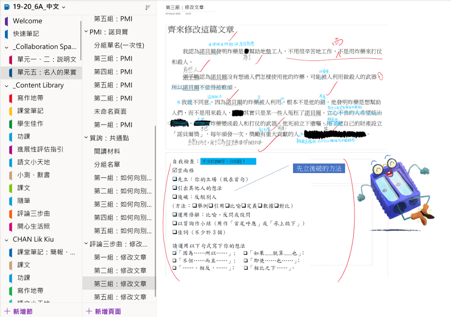 Learning a language is not only about reading, but also writing. Teams allows my students to hear their peers and write things at the same time. We use OneNote as a collaboration space for group work. Students sometimes ink in different colors to easily distinguish their work.