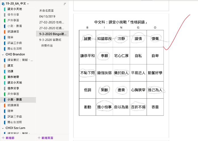 Below you’ll see we played an online bingo game in OneNote to work on vocabulary.