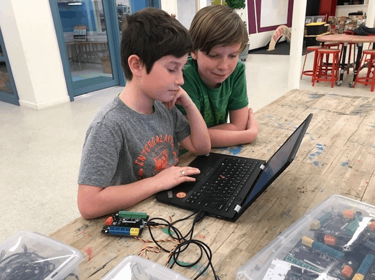 KID Museum’s signature program, Invention Studio, engages middle-school students in a series of skill-building workshops that focus on technology, engineering, and fabrication. Students then use their skills to develop a prototype of an invention to help solve an environmental problem. During the first four years of this program, we used the Arduino electronics platform for the coding and robotics components of the program. But we found that it was a struggle to get kids past a level of basic understanding to a place where they felt comfortable adapting and using the tools in their own projects. As a result, very few of their final projects incorporated this technology.