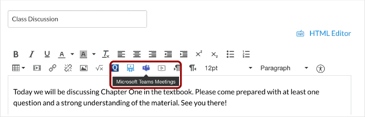 1. When in the Rich Content Editor, click on the Microsoft Teams icon