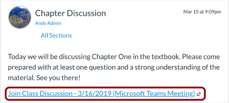 Now the meeting link will appear for students in Assignments, Discussions, or wherever else in Canvas you can create a meeting. Learn more about the Canvas integration here.
