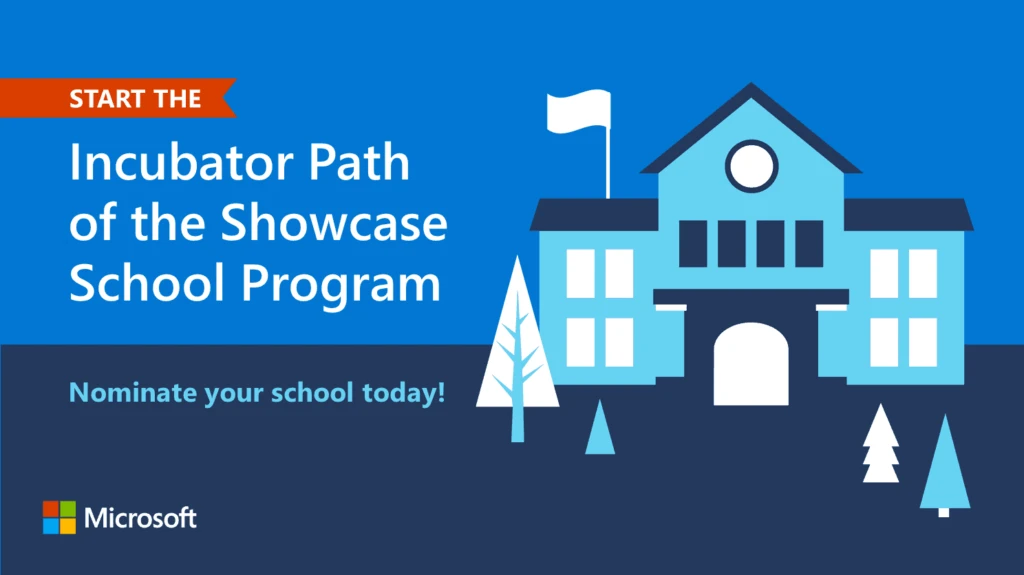 Schools will go through the Incubator Path at their own pace supported by Microsoft and its partners. Along the way, they will have access to the broader Showcase School community to establish global connections and facilitate learning from and with other schools.