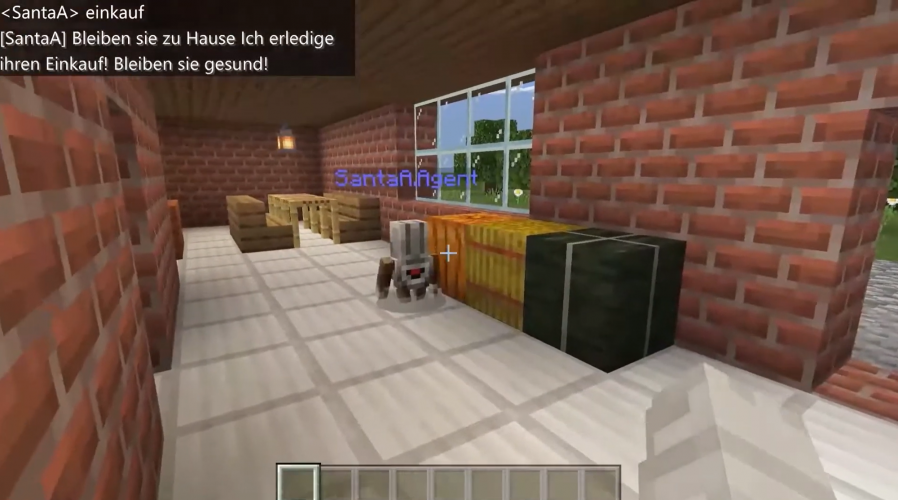 If you have to keep your distance, communication is difficult. The two have therefore created a language assistant who, on command, plants fields, brings in the harvest, or orders bread, so it’s no longer necessary to leave the house. Phil programmed an excellent shop system, and Colin was responsible for building the world—especially the huge, detailed house that stands on a mountain where the Agent is carved into the stone. This artistic element impressed everyone!
