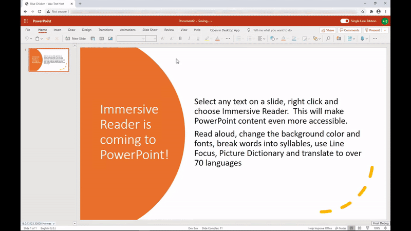One of the top requests we’ve heard from students, parents and educators has been to add the Immersive Reader to PowerPoint. It has also been a top UserVoice request for the PowerPoint team. Today we are thrilled to announce that we are adding the Immersive Reader to PowerPoint in two areas.
