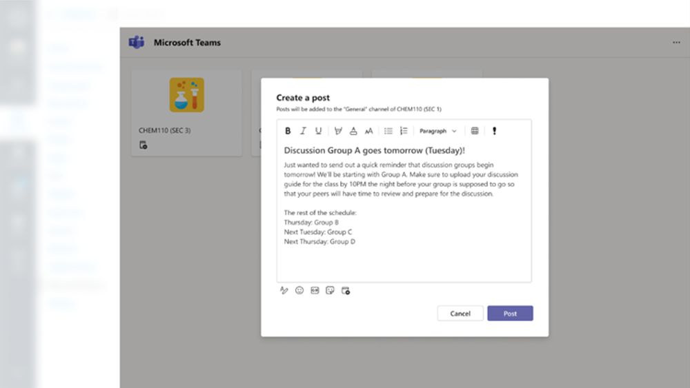 Create Teams posts within Canvas