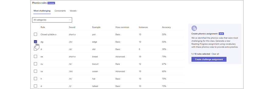 From within Education Insights educators can also turn personalized lists of practice words into Reading Progress assignments in one click with the Challenge assignment feature.