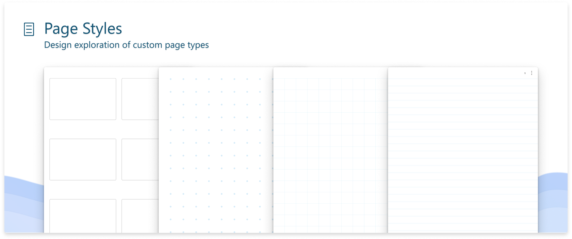 The Journal team has been reading every bit of feedback to see what changes they can implement in the experience. A top request has been new page types. Here’s an early design sketch for Page Styles that’s planned to release soon.