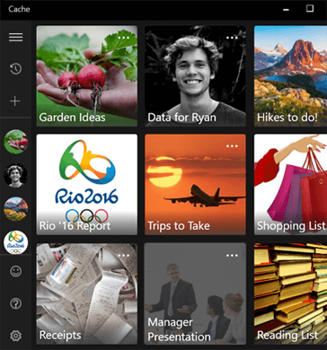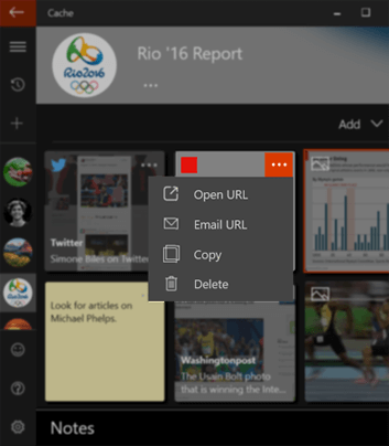 Cache is a great place for your important content. Use Cache to quickly bookmark text snippets, images, web pages, files, reference material, and your notes.