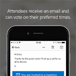 Propose your selected times to all attendees and allow everyone to vote. Once you reach consensus, FindTime sends out the meeting invite on your behalf, eliminating the time consuming back-and-forth usually required to find the best meeting time.