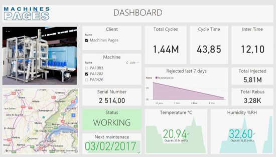 Rockwell Automation also provided Machine Pagès with a Power BI dashboard that allows the company to track the status of its machines down to the finest level of detail by aggregating data from the production controller and other IoT sensors. If the performance of a machine starts to decline, or the rejection rate increases, the source of this change can be quickly analyzed and fixed in real-time.