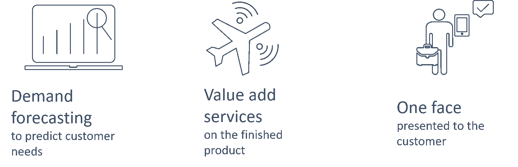 In B2B scenarios, manufacturers typically operate as part of a value chain to deliver goods or services to end customers, in partnership with other businesses. Processes and data across business partners can be digitized onto a common platform to provide greater transparency to the entire value chain, instead of keeping information siloed in individual entities. This holistic approach helps enable better service for end customers, and ultimately builds customer trust. A great example is the manufacturing and sale of a complex product like an airplane to an airline. There are many different components, manufactured at different suppliers, that make up the product that is ultimately sold to an airline. Having a common platform supports transparency throughout the manufacturing process, both across business partners as well as with the end customer.