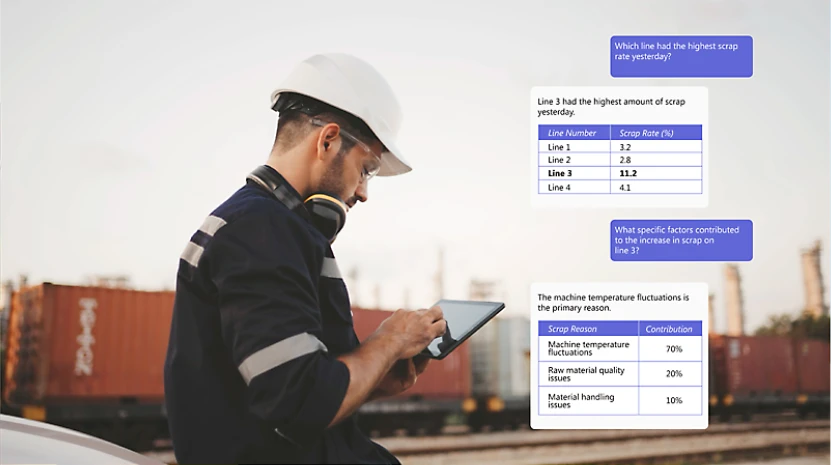 As OT and IT capabilities mature, factories are gaining the ability to reason and respond directly at the point of value creation—on the shop floor, in real time. Frontline teams, empowered by multimodal Microsoft Copilot, can push the boundaries of what they can diagnose, decide, and execute. Over time, this human‑machine collaboration forms operational “agents” that can be deployed into production lines and day‑to‑day routines—turning intelligence into repeatable execution.