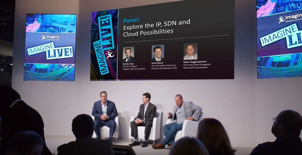 Charlie Vogt, Imagine Communications CEO, discusses the state of media with two technology icons – Scott Wood of HPE and Steve Guggenheimer of Microsoft. This panel will discuss how the three companies are working to lead the transformation of the media industry with substantial investments in innovation across IP, Cloud, and Virtualization technologies.