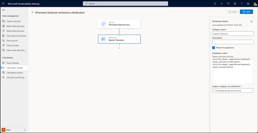 Once you gather data from your value chain partners, you can calculate your scope 3 emissions using the new attribution node in calculations.