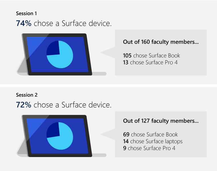 After JSU’s first two rounds of sessions, it was evident that faculty members overwhelmingly preferred Microsoft Surface devices. Out of a total of 160 faculty members during the first round of sessions, 74% chose a Surface device. Out of 127 total faculty members during the second round of sessions, 72% of faculty chose a Surface device.