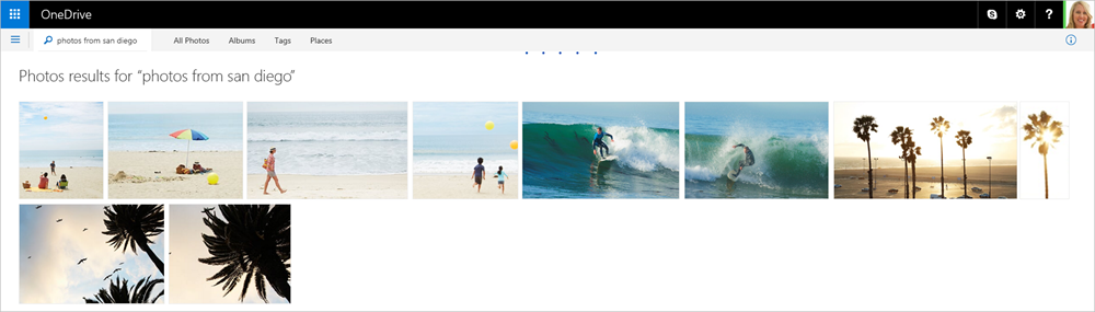 You can now search directly from the All photos view too. This includes finding photos that have been tagged (such as “cat” or “sunset”) or photos from a specific location (try your last vacation). You can even search using emojis. These searches also work in the OneDrive mobile apps.