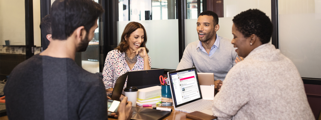Image of four coworkers collaborating around a conference table.