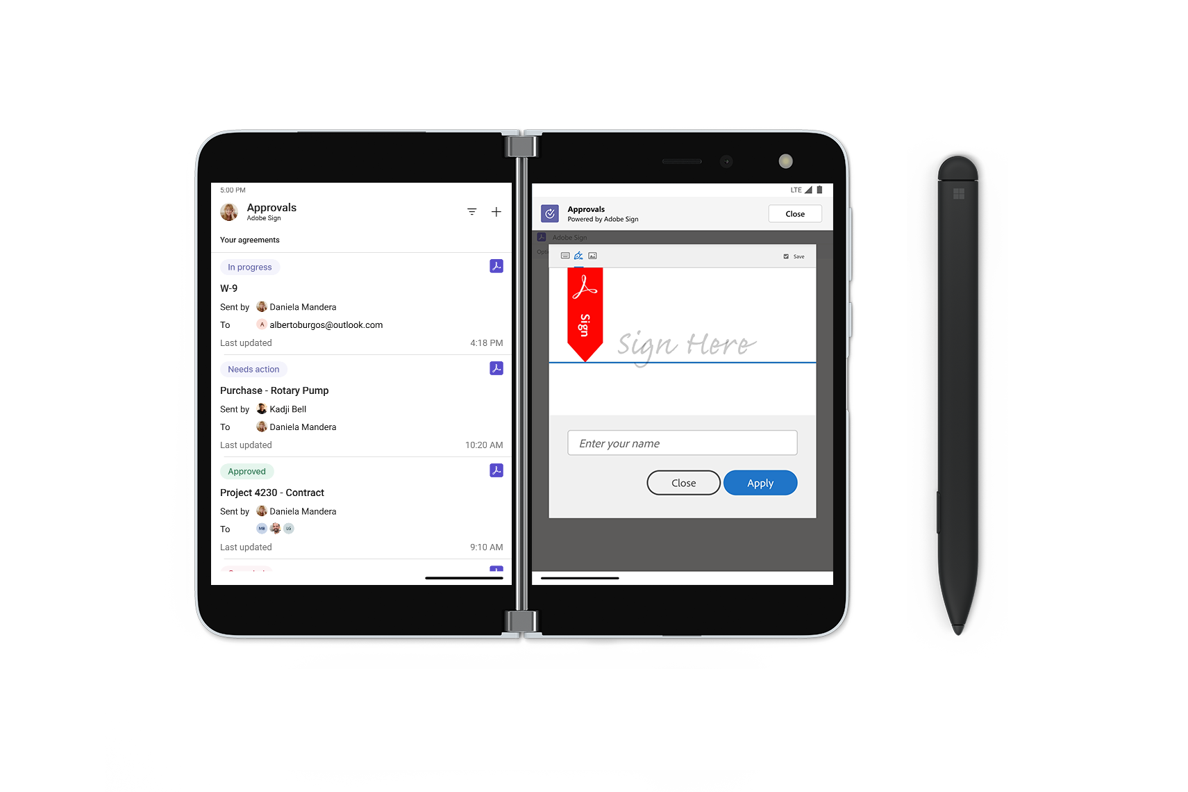 Approvals are a critical component of how manufacturing frontline workers get their job done. To streamline workflows, new templates in Teams provide a repeatable structure for common approvals, like requesting overtime. And integrations with key partners, like Adobe Sign and DocuSign, allow for an electronic signature approval natively within the Approvals app for contracts and permits on the factory floor that require formal attestation.