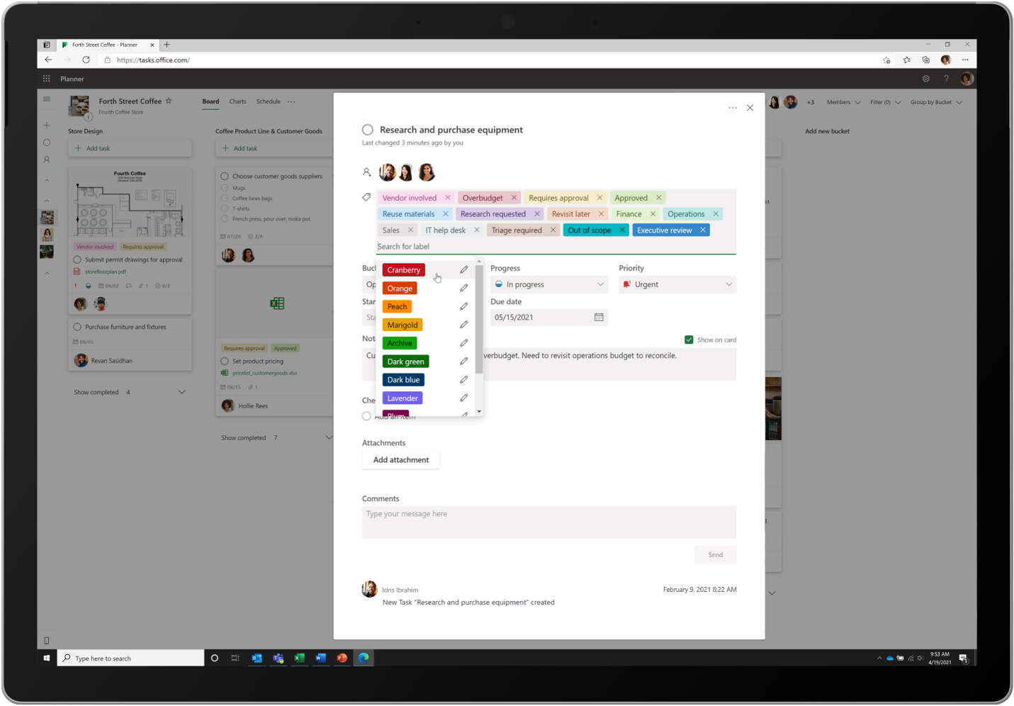 Labels are a quick, visual way to categorize similar tasks in Planner and Tasks in Teams. Currently, you might use labels to tag tasks with the same completion requirements, dependencies, or issues, and then filter your plan on those labels to zero in on related tasks. But we’ve heard from you that you need more label options, and we’re happy to announce we’re increasing the number of available labels from six to twenty-five. This update is now available on all platforms.
