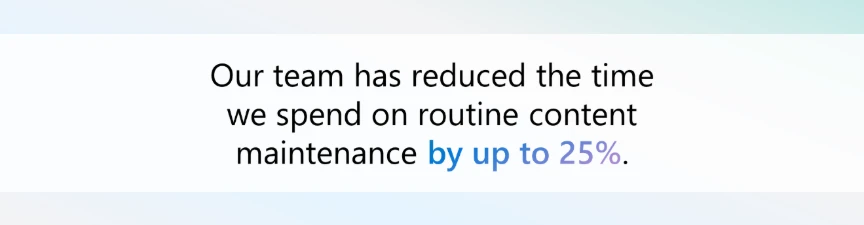 AI-assisted maintenance can help you keep large, fast-changing content ecosystems accurate and up to date without overwhelming your teams. By using AI to surface inconsistencies, flag outdated material, and recommend updates, you can dramatically reduce time spent on routine fixes. Your experts can then focus on reviewing changes for accuracy, regulatory needs, and strategic intent. This balance enables you to maintain quality at scale while freeing your teams to invest in higher-value innovation.