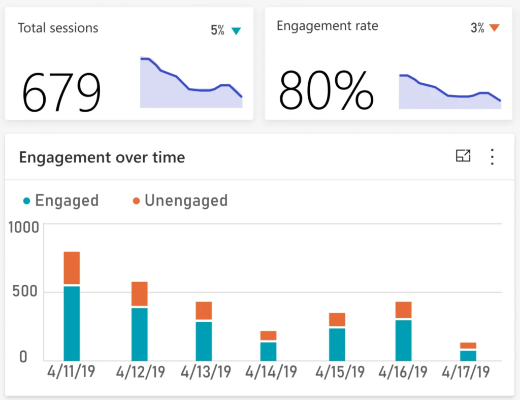 Each of the available metrics in the built-in dashboard has been deliberately selected by the team behind Power Virtual Agents to help you improve your bots. To learn more about the metrics, visit aka.ms/PVA/Analytics or watch the deep dive video below.