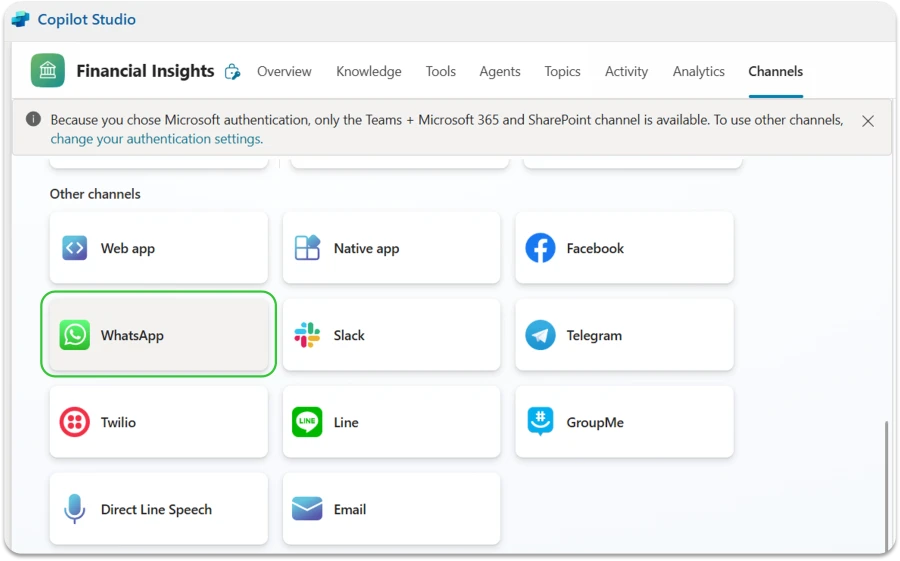With WhatsApp now generally available, Copilot Studio helps ensure that organizations can expand their reach and create high-impact customer experiences at enterprise scale. Learn more.