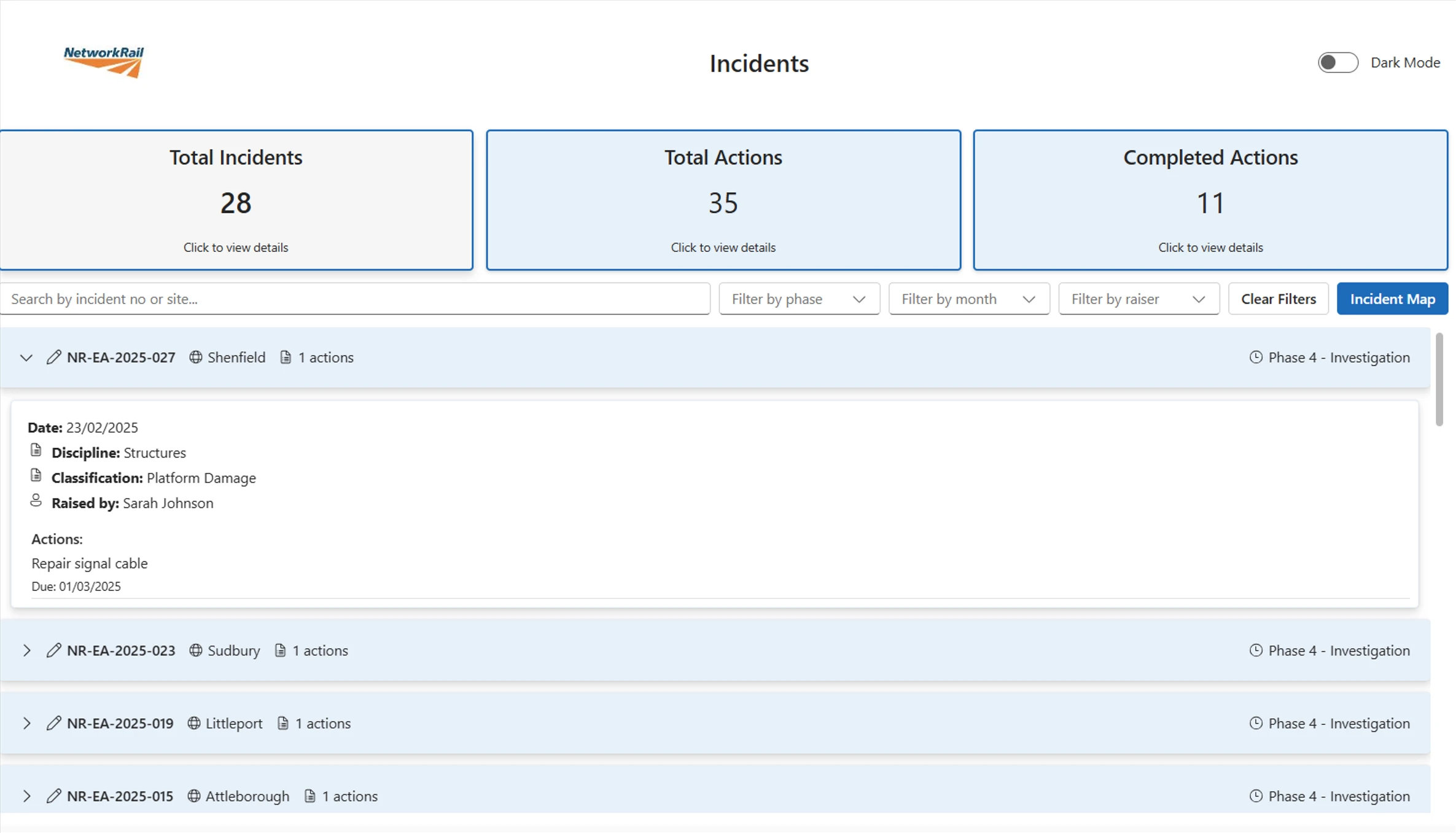 * Any data shown in the above pages relate to fictional data only and do not represent actual incidents or Network Rail employees
