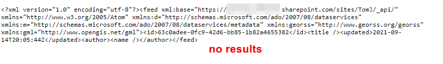 Here, you can see exactly the filter that is going to be applied when we query SharePoint: ContactEmail eq 'Andrea.R@contoso.com'. All it would take is a quick glance at SharePoint to confirm that there aren’t any items that will fulfill this condition. With a little knowledge of the SharePoint REST API, I can even turn this into an API query I can run in my browser: