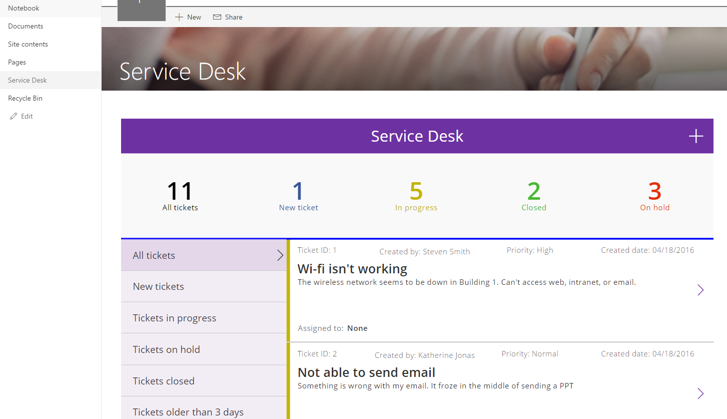 You can embed any PowerApps app on a page and we think the possibilities here are endless. Here is a page where I have embedded an app so service technicians don’t need to go outside of SharePoint:
