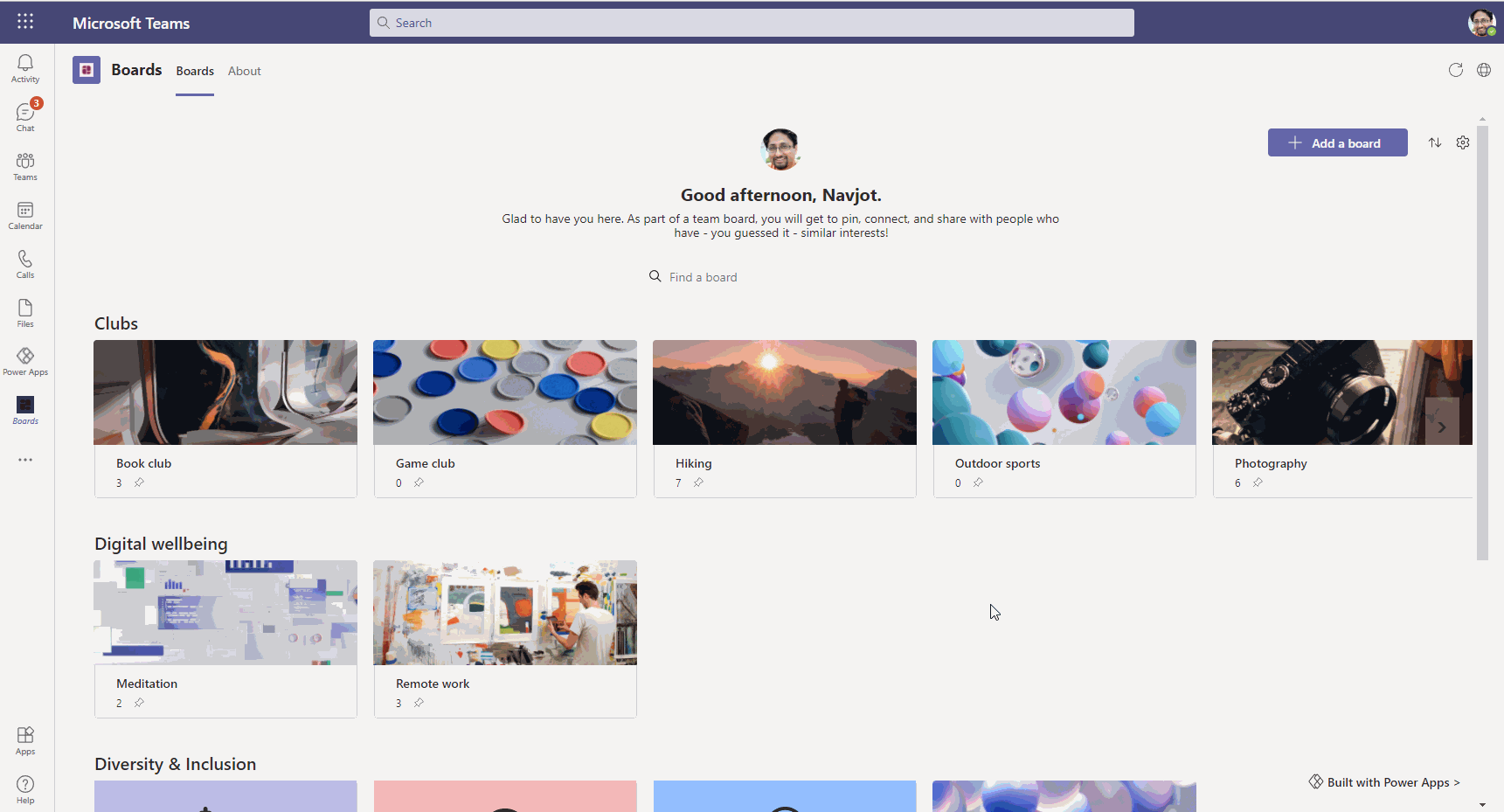 Information and resources relevant to a particular topic can be spread across a broad surface area – a Teams channel, a chat conversation, a file on Share Point, an internal web link, a Yammer post etc. making it hard to find. With Boards, you can create shared space to collect all this information and organize them by categories. All members of the team can contribute to the Boards – enabling crowdsourcing to organize information. Team owners can govern the accuracy of the information with the ability to edit any user created information.