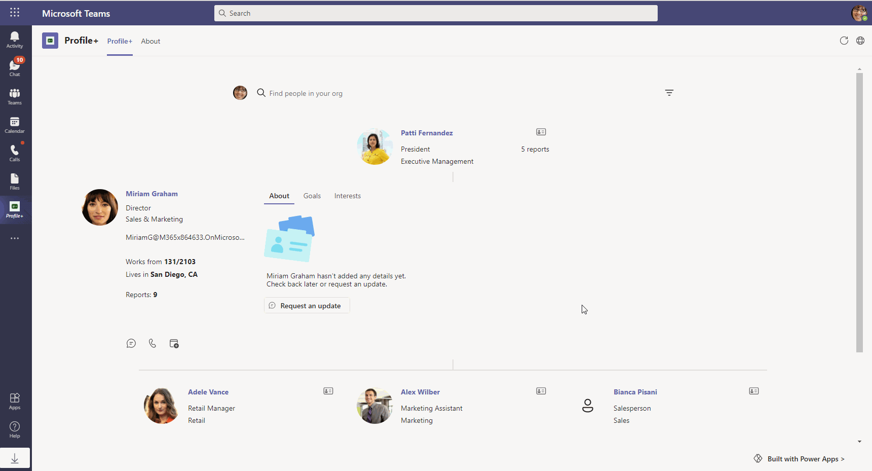 The Profile+ solution is designed to add to, not replace, the current system of record for employee information. You can extend the application to meet the unique needs of your organization. Integrate into your HR system to surface information for team members to browse, or add additional information to the user profile – for example, territory managed for field sales, research papers written for an R&D firm etc. You can get the preview version of the app from github at https://aka.ms/TeamsProfilePlus. The application can be deployed on Teams using One-Click installation. Click here to learn more about Profile+.