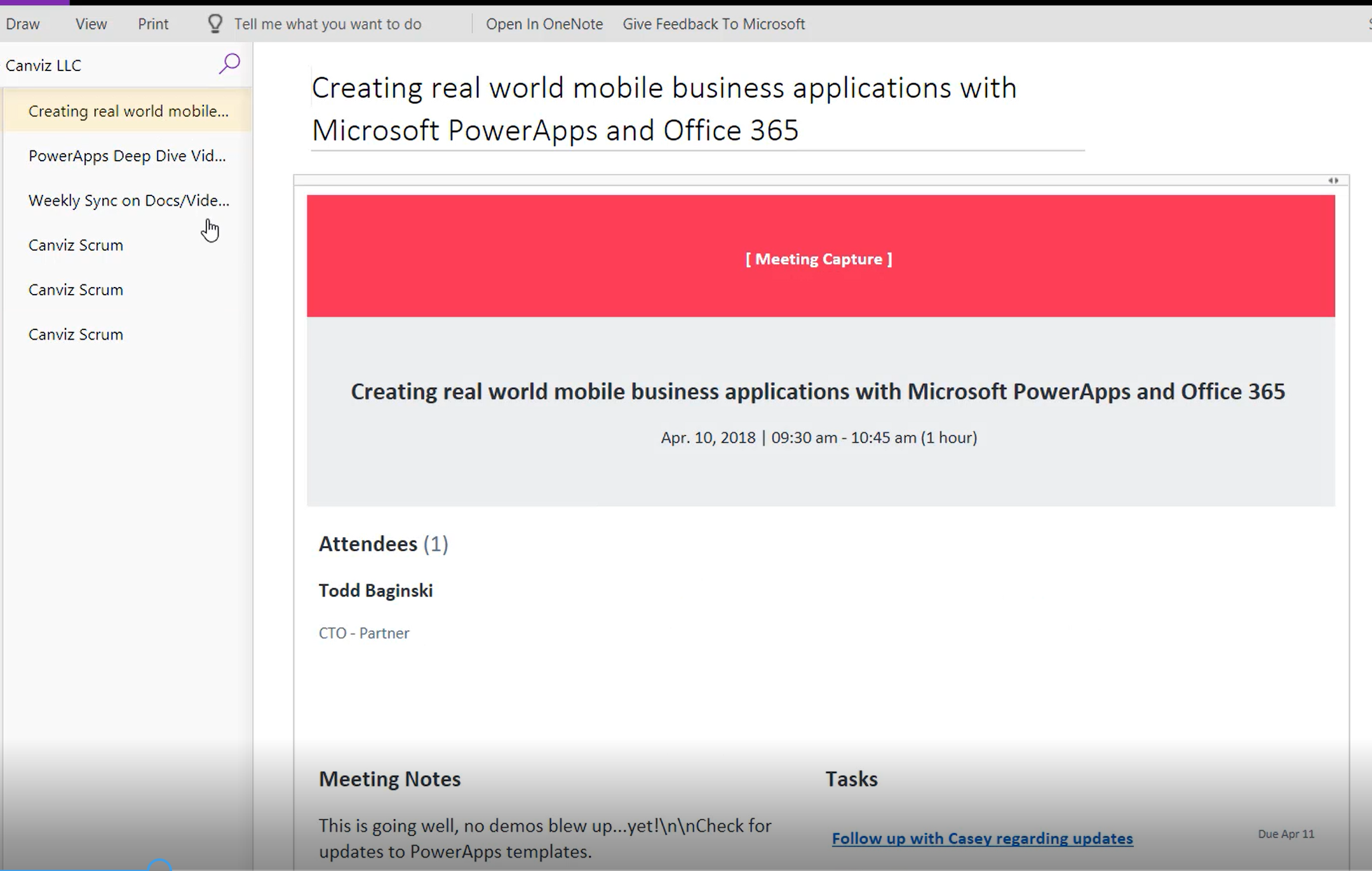 This video provides an end-to-end functional demonstration for the Meeting Capture PowerApp sample template. |