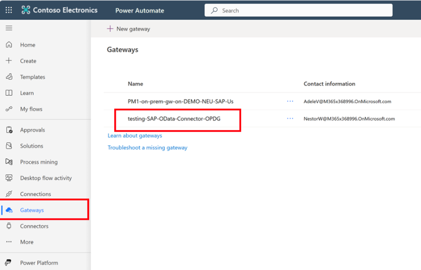 Once the data gateway is installed, you should see it in your Power Automate Environment