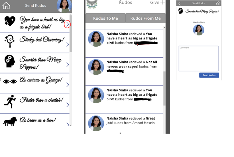 Naisha Sinha has certainly created some interesting Kudos (See images of her application above). “Smarter than Mary Poppins!” is Naisha Sinha’s moms favorite and must admit I love “Curious as George!”
