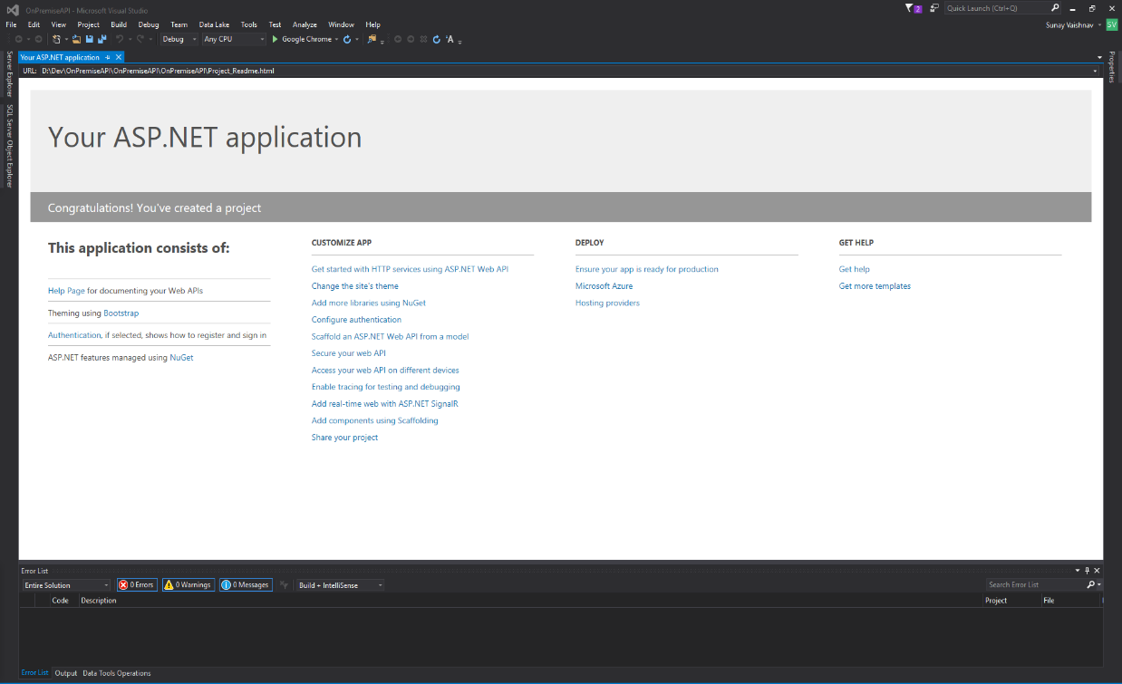 - The home page of your web API should open in a browser. The web API should now be running locally on IIS, make a note of the URL and Port that points to your web API
