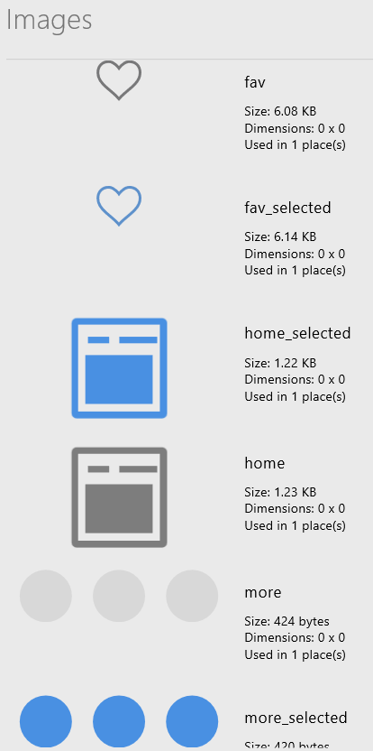 Preparation: Gather your media in preparation for this app build. You’ll need 4 icons for the navigation using blue outline color: name them
