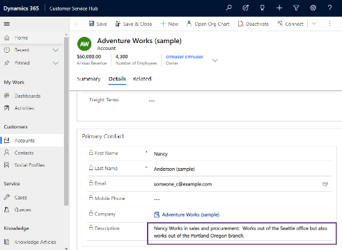 Users no longer have to click and scroll to view all of the content in a multi-line text field in a Quick View form. The fields will now automatically expand to show the full content when the Quick View form is loaded on a page. You no longer have to take additional steps to view and read information when using a Quick View form on a parent or main form.