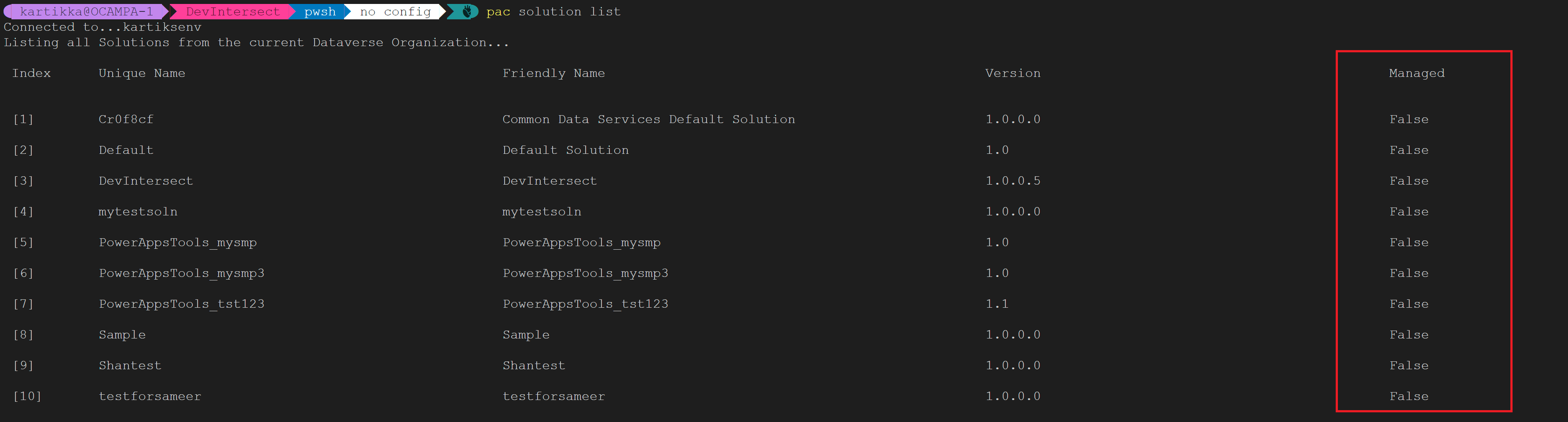 Showing if solutions are managed or not on the command line