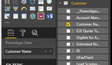 - Next, add the PowerApps visual to your report and set the data fields associated with it.